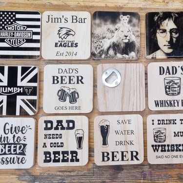 If your special boy is a bit older, we have heaps of options for him! From personalized coaster bottle openers, signs, clocks and much more! Have a browse through our gallery or contact me directly if you have a special request.